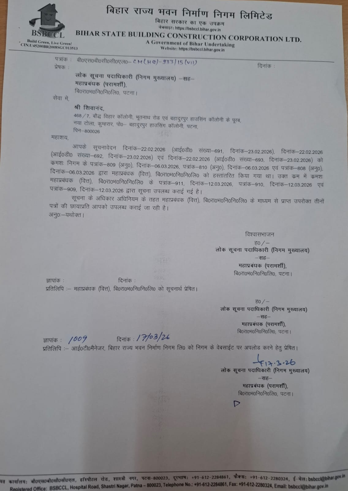 Shri Shivanand (RTI ID Number-691,692,693,Dated-22-23/02/2026) |